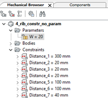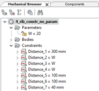 6、”W”的表达式改为”40″(所有筋板模型都相应地进行了修改-检查另一侧的模型)