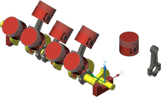 4、通过插入组件命令(BMINSERT)插入 connecting rod subassembly 和 piston subassembly